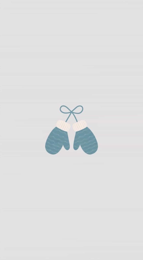 This wallpaper focuses on the simple image of winter gloves in soft blue tones. It feels personal, warm, and very season-appropriate.