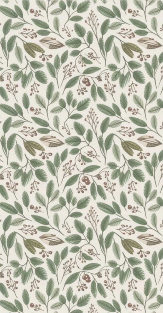 This one goes for a more rustic, handmade look with leafy branches and twines. Itโ€™s the kind of wallpaper that feels cozy and charming.