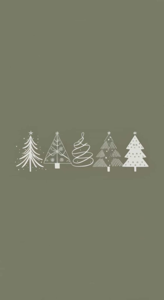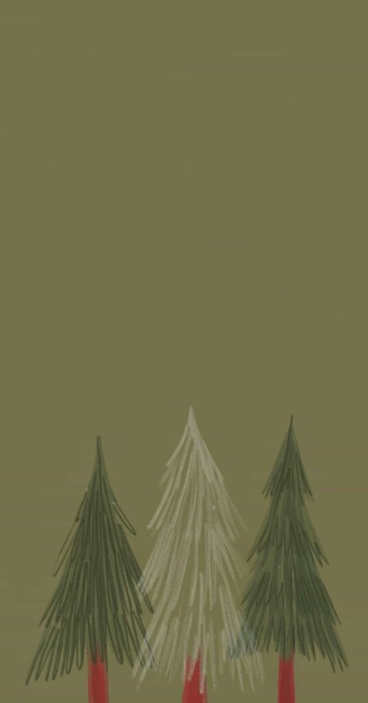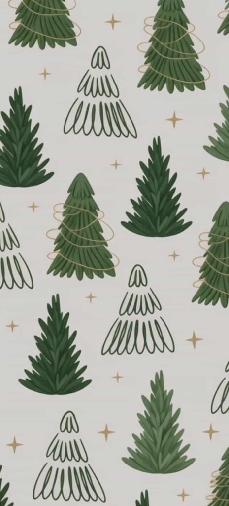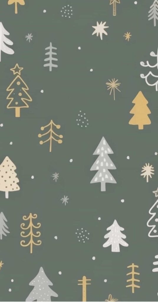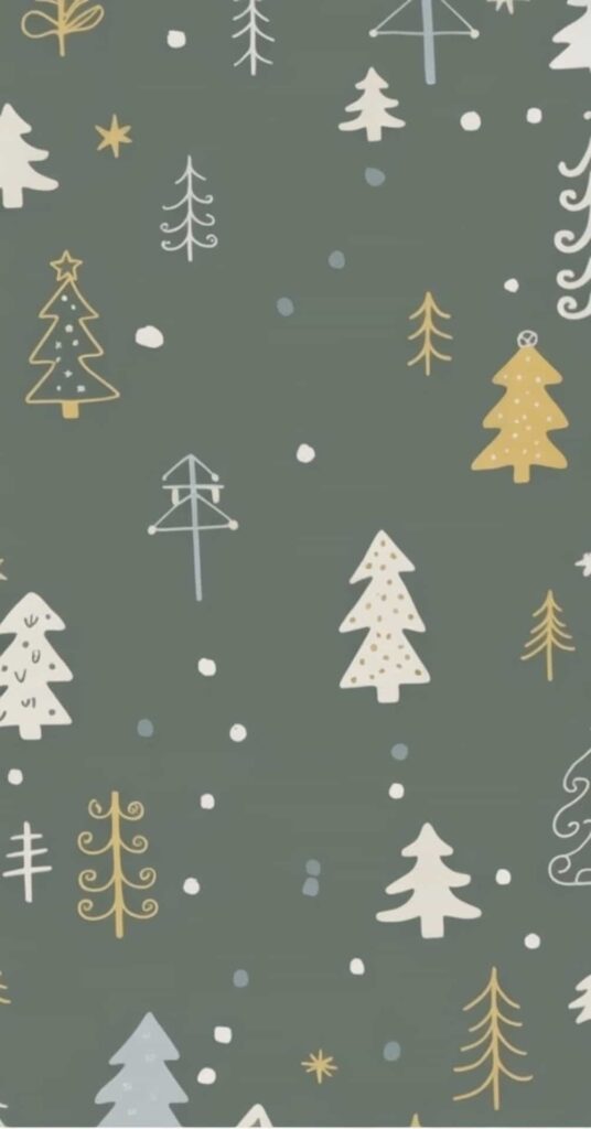 This wallpaper keeps it simple with green trees on a soft beige base. It has that cozy, neutral vibe thatโ€™s perfect for winter.