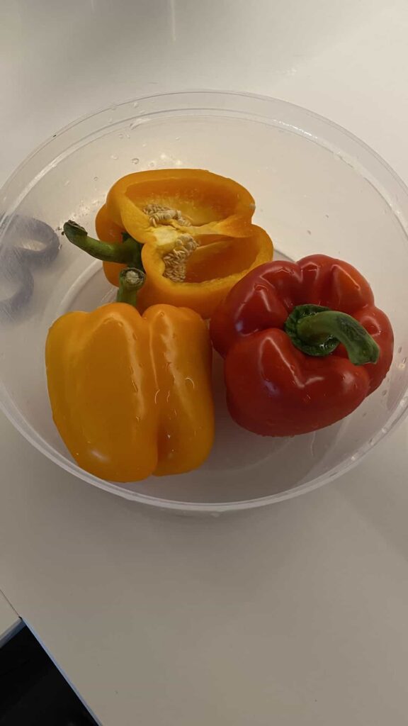 Preheat your oven to 190ยฐC (375ยฐF). Wash your bell peppers, slice them in half lengthwise, and remove all the seeds and inner membranes.