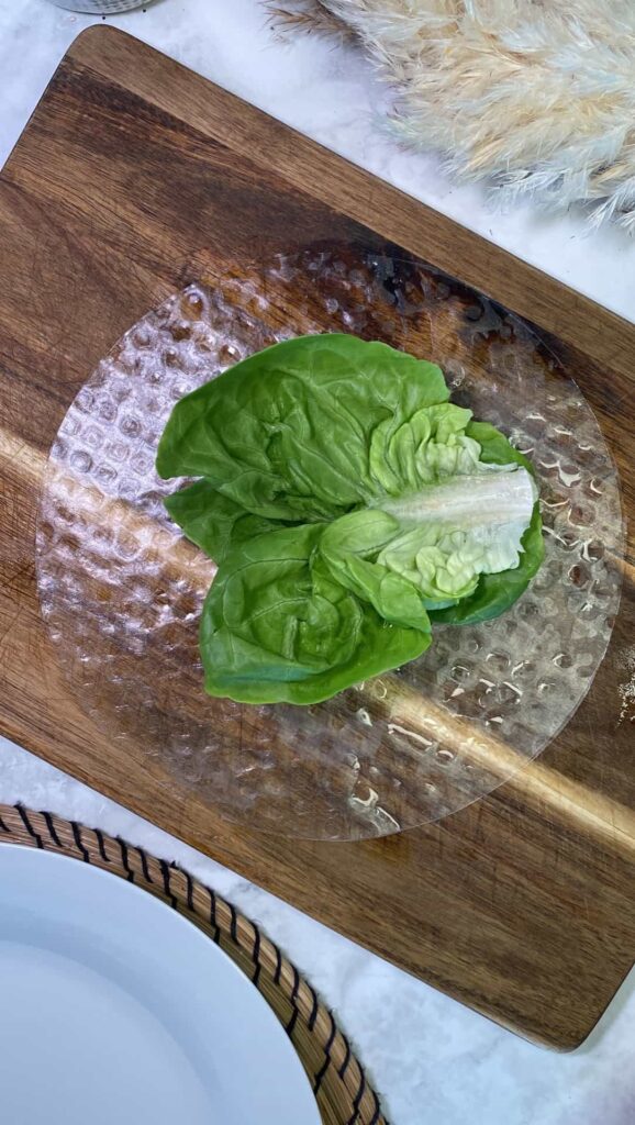- The smaller rice paper sheet on top acts like a lid. It holds everything in so your wrap doesn’t burst in the oven.