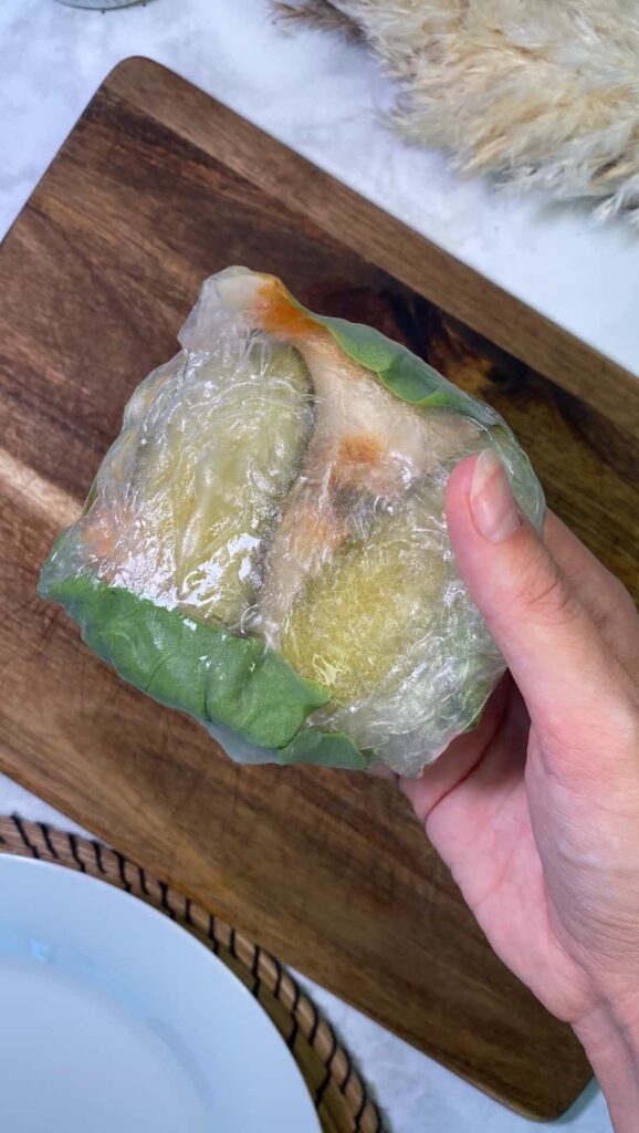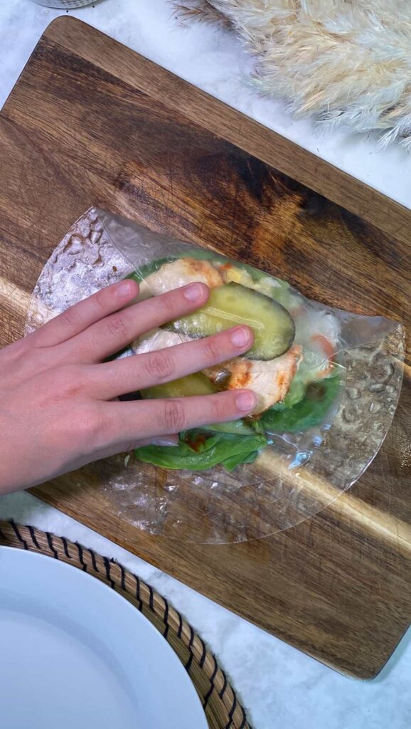 - Use large rice paper sheets so you have enough surface area to fold the sides in securely.