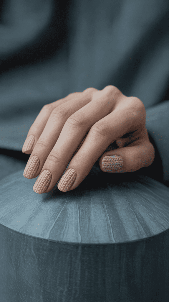 This Thanksgiving, try a cozy sweater texture accent nail in a warm caramel shade. It perfectly captures the essence of the season, making your nails look inviting and stylish. Pair it with solid colors for a chic and festive look!